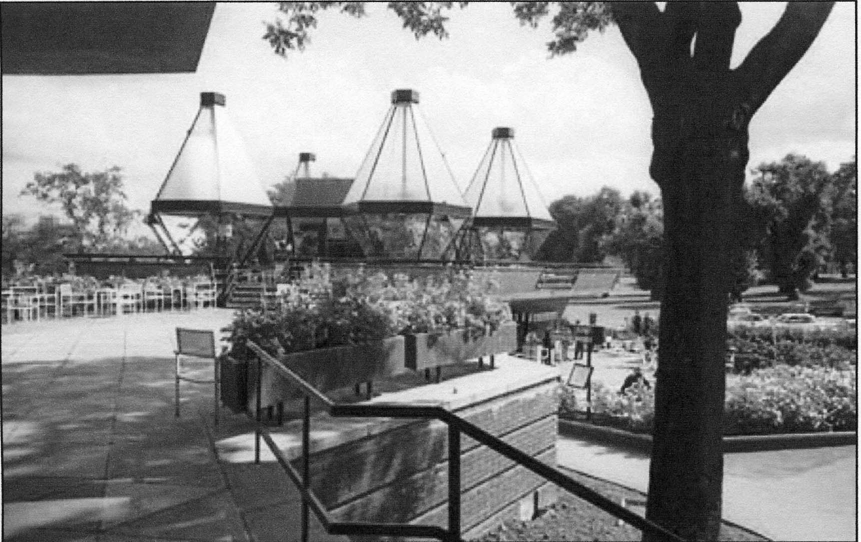 In 1963 Geoffrey Rippon proposed new catering facilities for Hyde Park to be built by private caterers. A limited competition for Forte's two sites in the park won Gwynne the commission to design the Serpentine and Dell Restaurants. Gwynne incorporated two basic ideas of 'shelter' and 'outlook' into his design in order to enhance the experience of Hyde Park to visitors; this was done by providing conservatory type buildings with umbrella-like solutions for the roofs. Terraces were high, raised well above water level not only to provide panoramic views across the Serpentine but also to accommodate the concealed service rooms beneath. Car-parking for visitors was kept out of sight. All this was achieved against a background of tight budgets, difficult planning restrictions and a rushed programme - remarkably the Serpentine Restaurant was open by 1964. Gwynne designed the original interior fittings and furniture, with an emphasis being placed on high levels of finish.